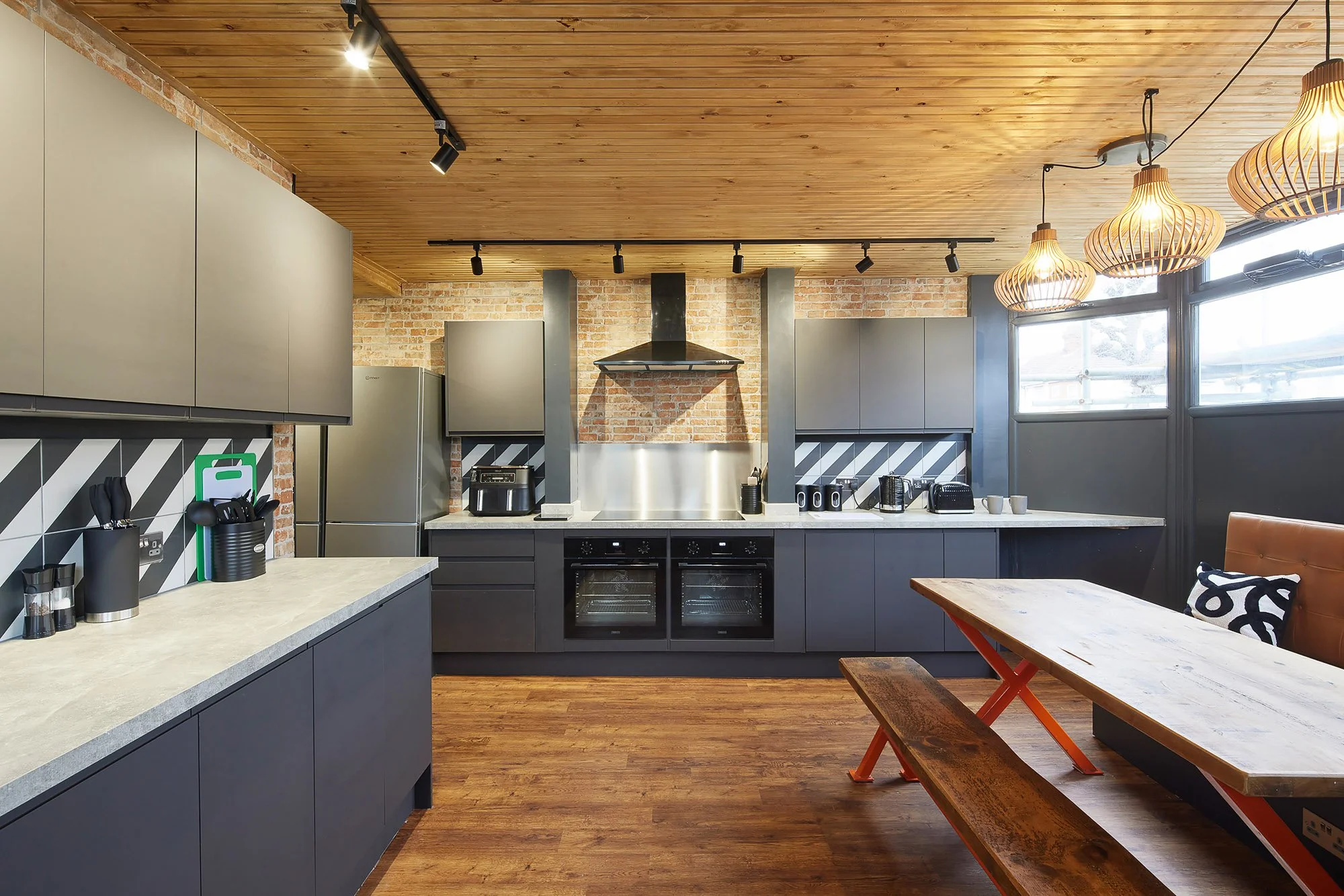 Fully equipped cafe kitchens provide great spaces to eat meals, create new dishes and socialise together. Open-plan living with a selection of bespoke seating and industrial mood lighting.